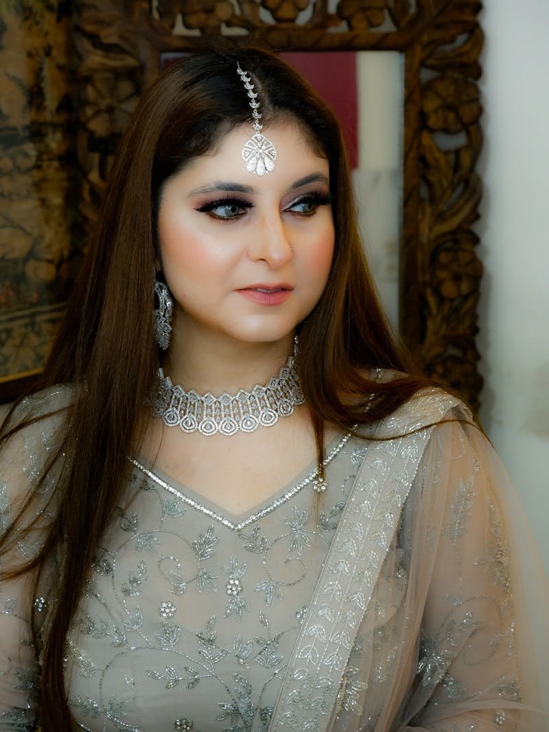The crown jewel of any bridal collection. This set includes a multi-strand Kundan choker with meenakari backing, a pair of cascading jhumka earrings, and a maang tikka. All pieces are finished in 22K gold plating with hand-set Kundan stones. Presented in a royal AAURA LUXE bridal box.